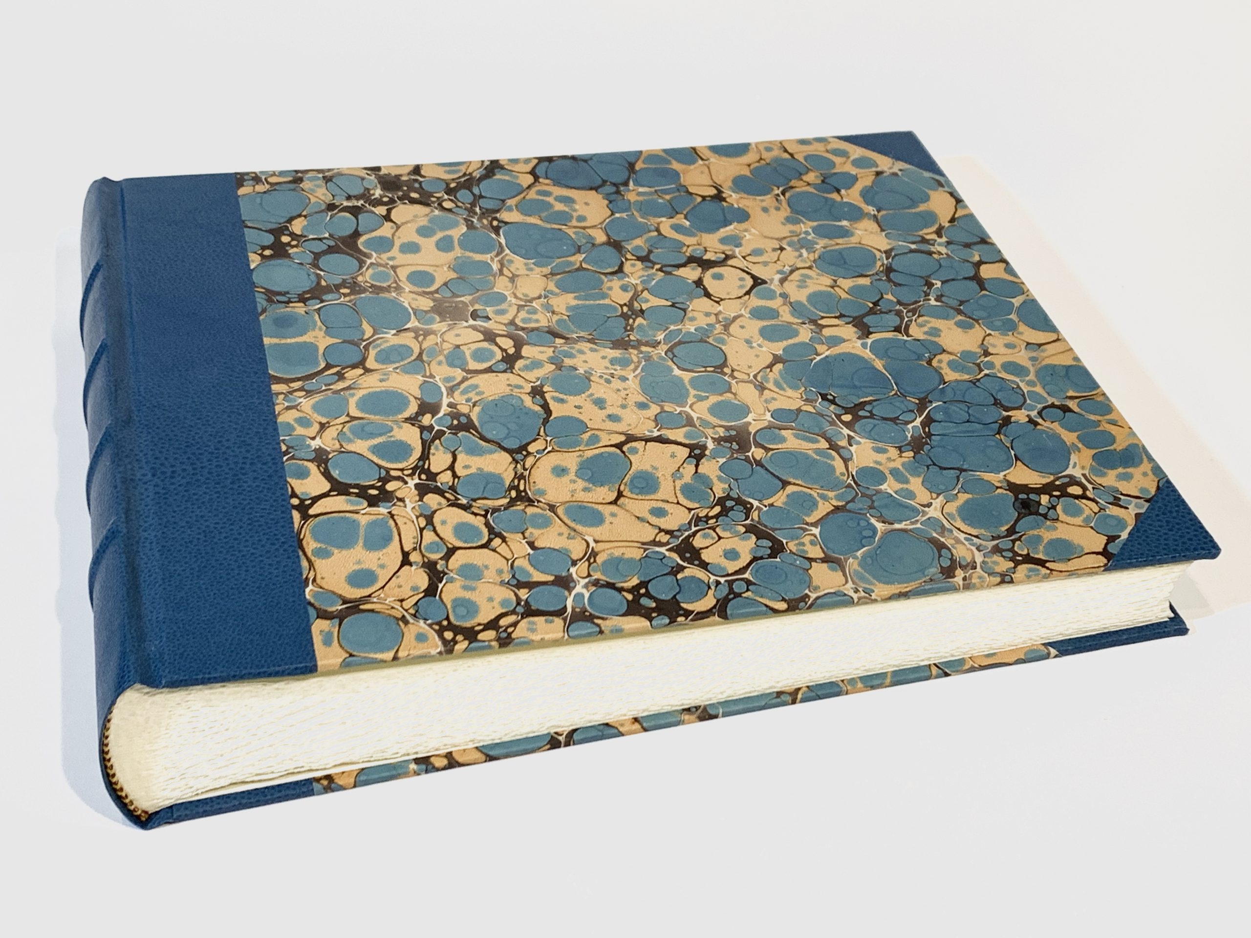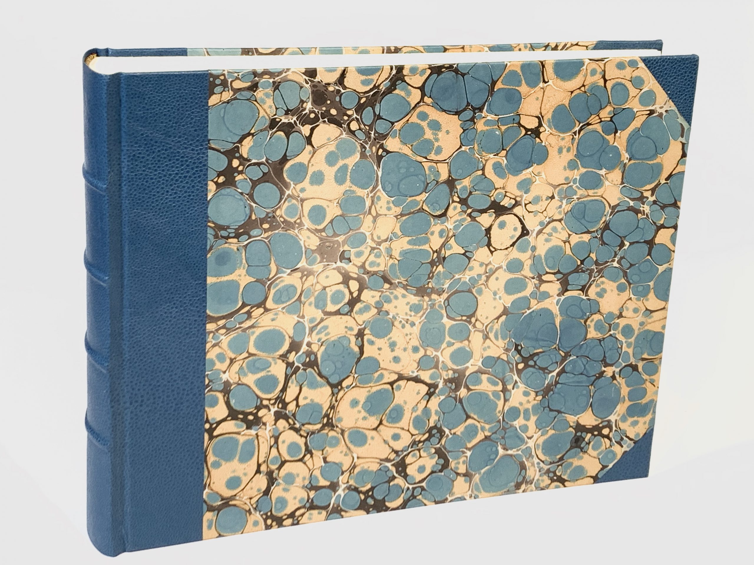 La realización artesanal del papel pintado a mano (con técnica de marmoleado o jaspeado) que utilizamos para confeccionar este álbum de fotos le confiere una particularidad: es un producto único.