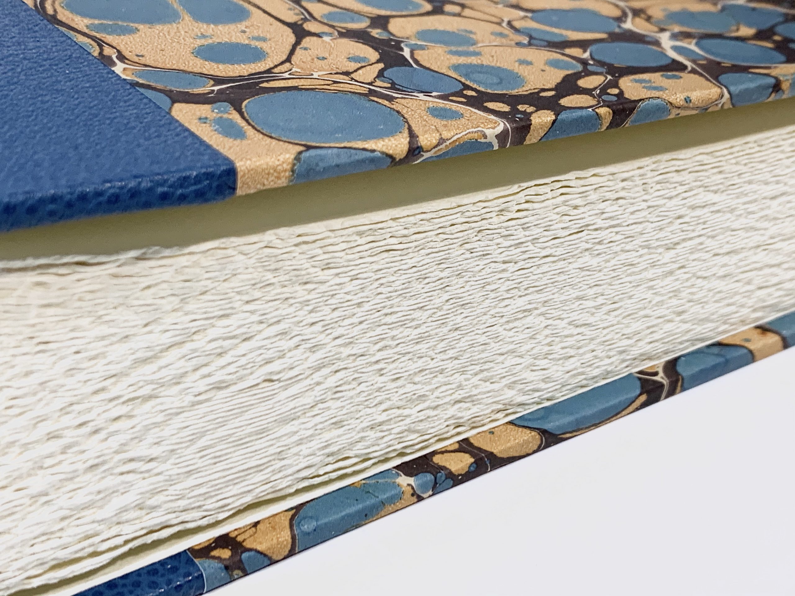 Trabajo realizado de forma artesanal con materiales de primera calidad. Dimensiones: 30 x 24,5cm, y 50 hojas con protección de papel cristal. Borde del papel escofinado (irregular).