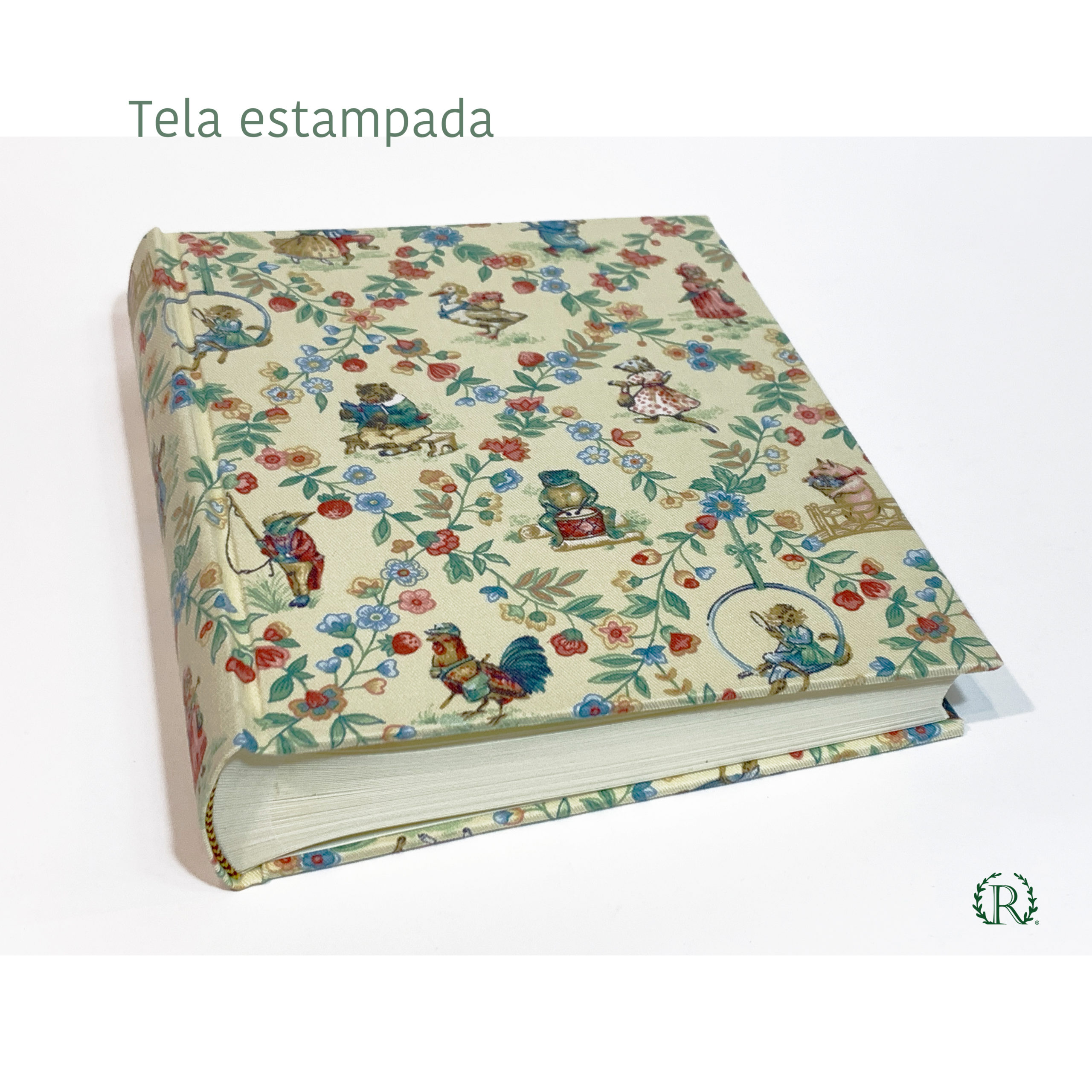 Para la realización de este álbum hemos empleado tela de algodón decorada con motivos estampados.