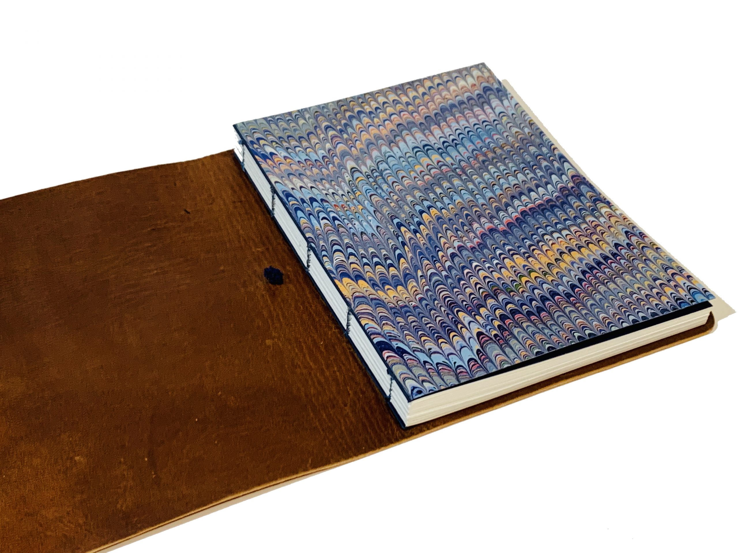 Cuaderno de tapa flexible con cubierta en piel de ciervo y hojas con costura copta.