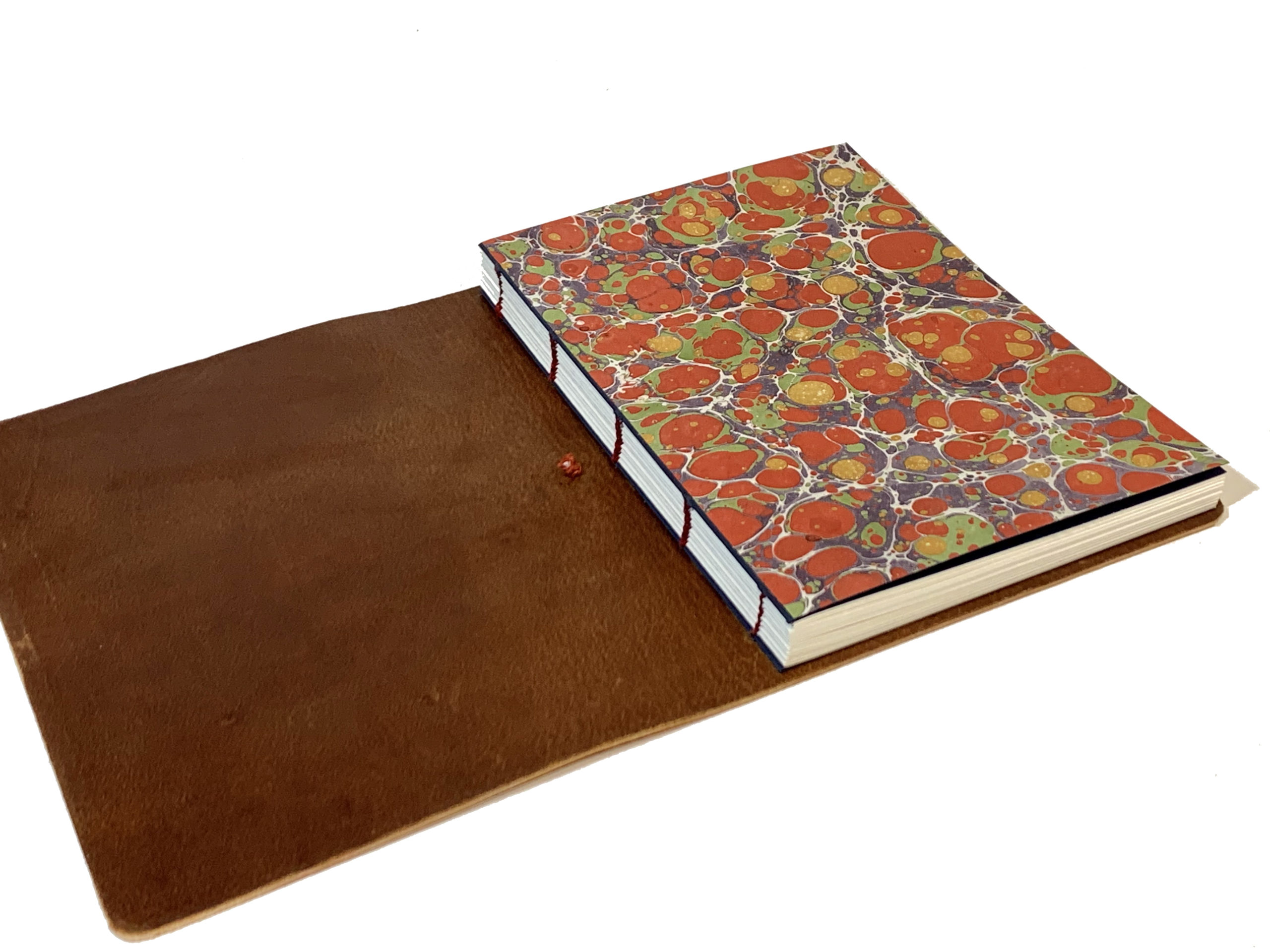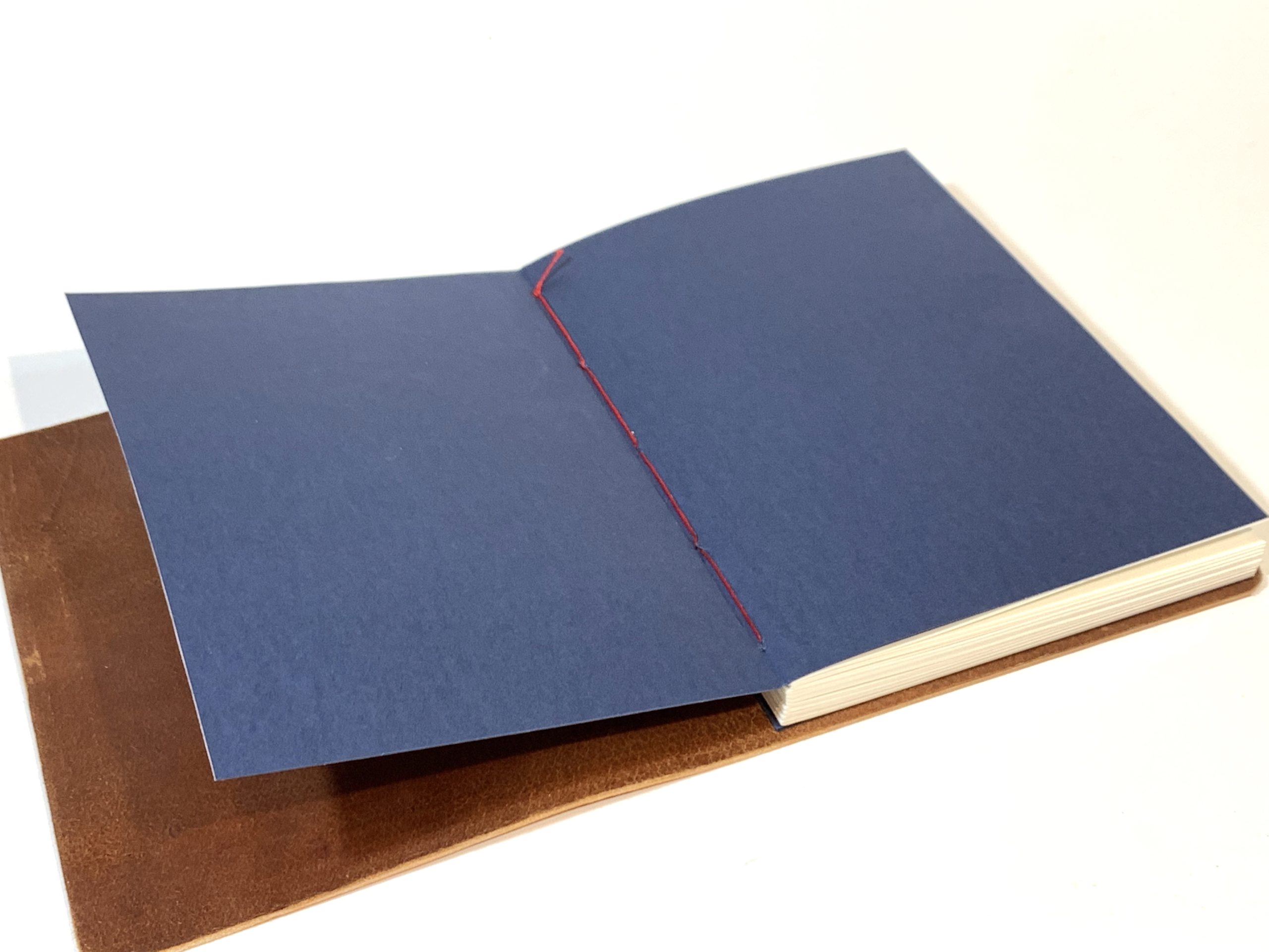 Cuaderno de tapa flexible con cubierta en piel de ciervo y hojas con costura copta.
